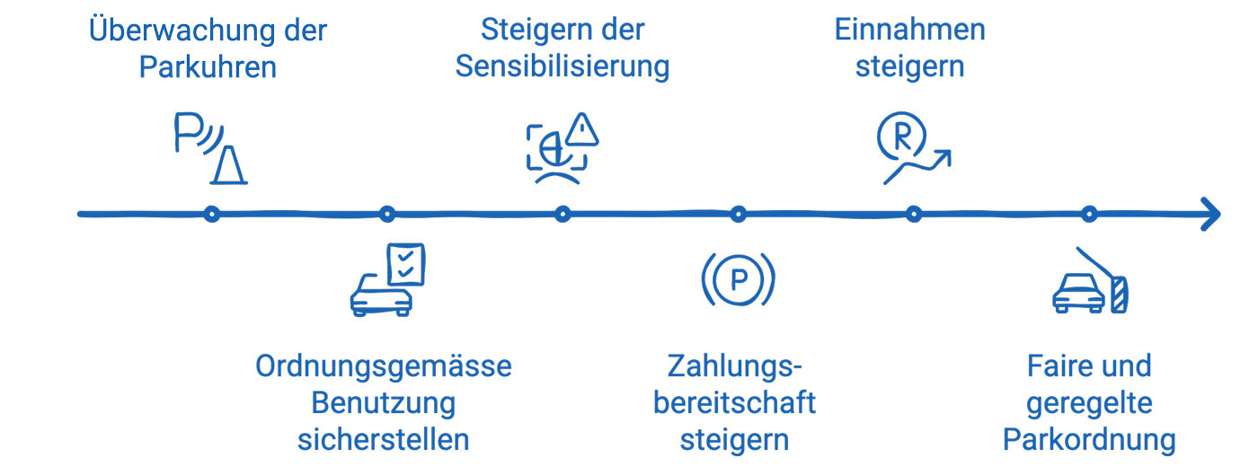 Wir stellen sicher, dass die Parkzeiten eingehalten werden und Parkplätze nur von berechtigten Fahrzeugen genutzt werden. Unser Team aus erfahrenen Kontrolleuren überwacht regelmässig die Parkuhren und sorgt für eine ordnungsgemässe Nutzung Ihrer Parkflächen. Durch unsere konsequenten Kontrollen spricht sich schnell herum, dass die Parkflächen kontrolliert werden – damit steigt die Zahlungsbereitschaft der Nutzer. So erhöhen wir die Einnahmen aus den Parkuhren und schaffen eine faire und geregelte Parksituation für alle.